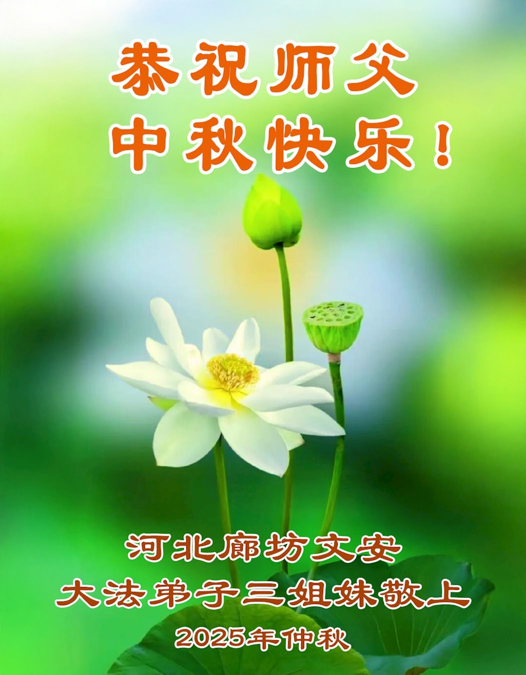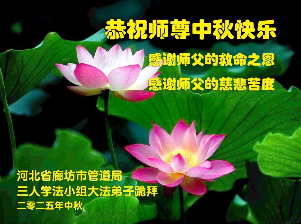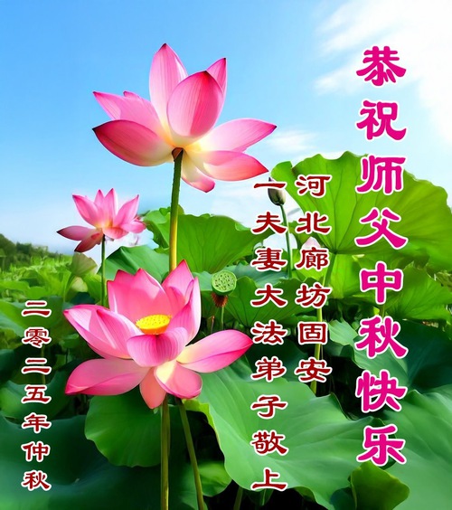 Falun Dafa Practitioners in Langfang City Respectfully Wish Master Li Hongzhi a Happy Mid-Autumn Festival (19 Greetings)