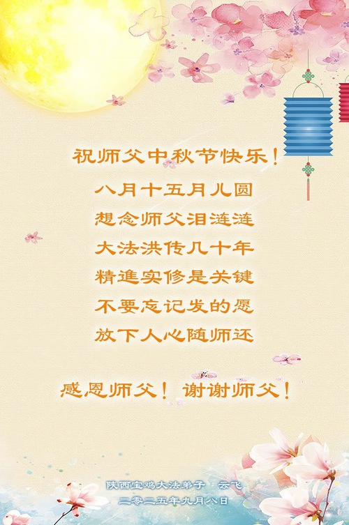 Falun Dafa Practitioners from Shaanxi Province Respectfully Wish Master Li Hongzhi a Happy Mid-Autumn Festival (18 Greetings)