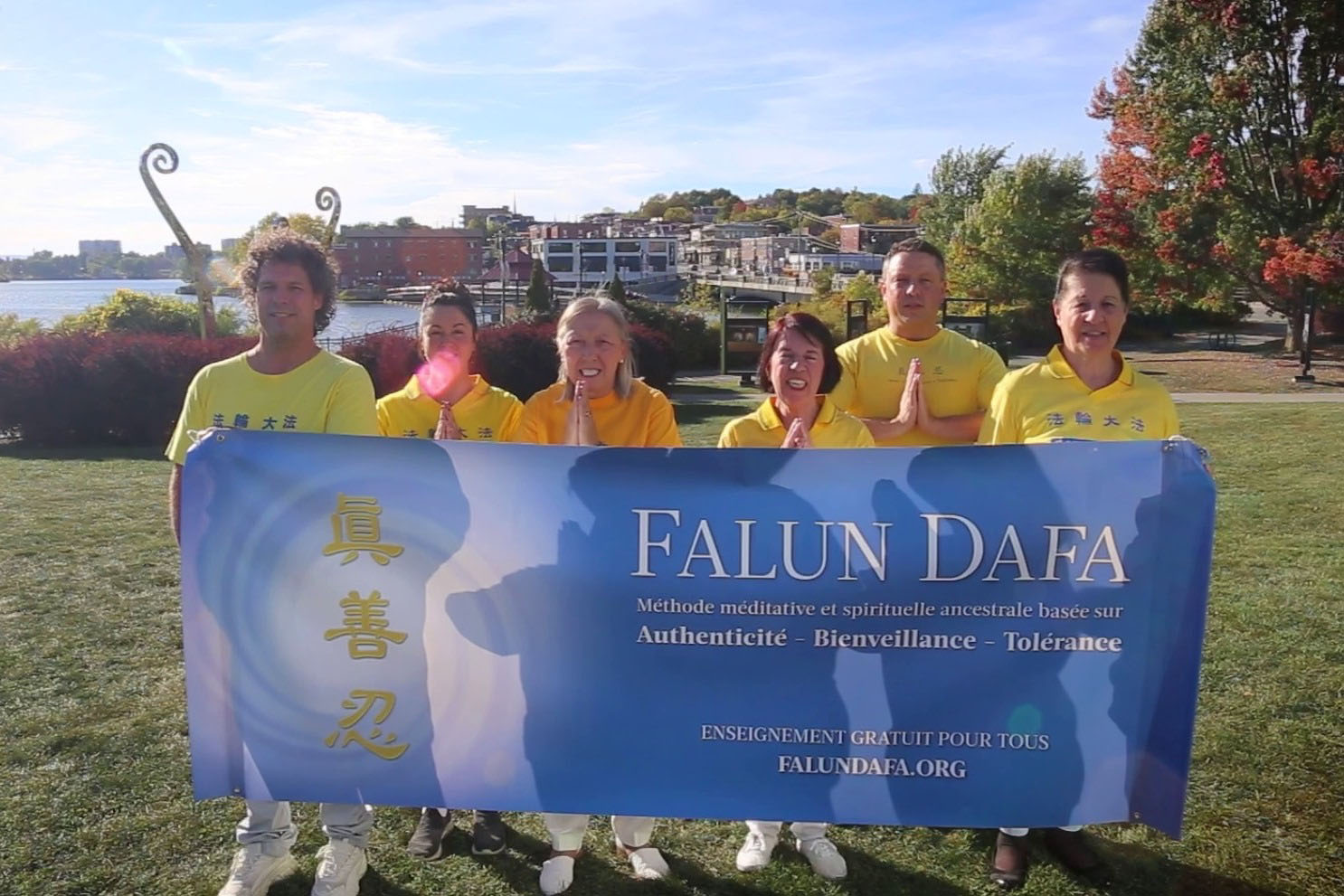 (Minghui.org) Falun Dafa practitioners from Montreal, Sherbrooke, and Quebec City gathered in their respective regions to take group photos and videos. They wished Master Li Hongzhi, the founder of Falun Dafa, a happy Mid-Autumn Festival.