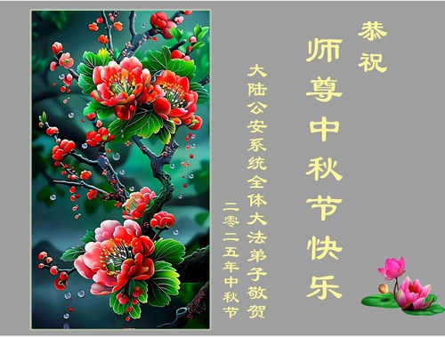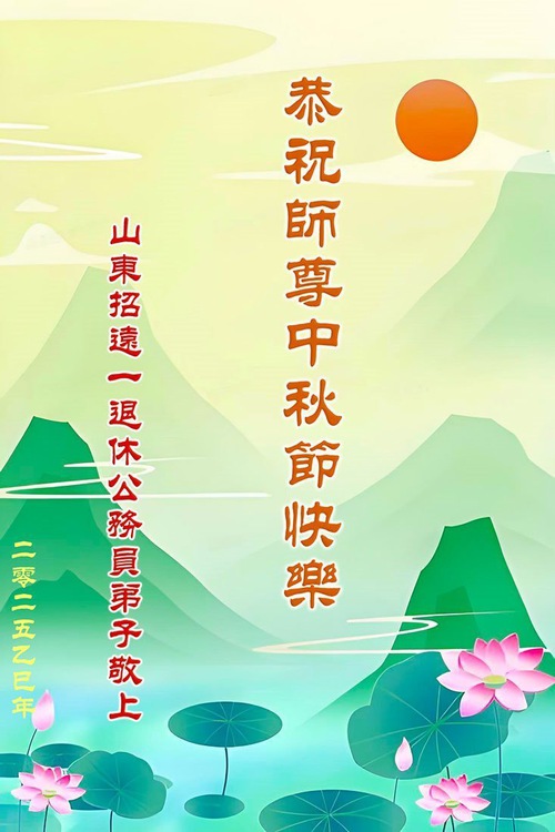 (Minghui.org) On the eve of the 2025 Mid-Autumn Festival, Falun Dafa practitioners in China’s military system, law enforcement, procuratorates, courts, and justice bureaus, and government sent in their greetings to wish Master Li Hongzhi, the founder of Falun Dafa, a happy Mid-Autumn Festival.