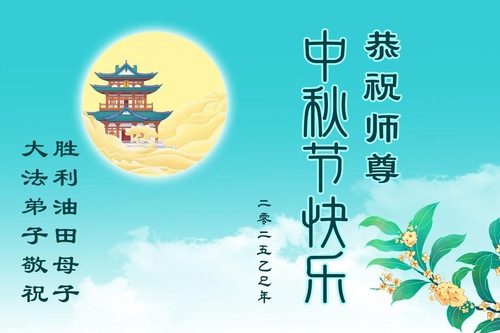Practitioners in Dongying City and Shengli Oilfield in Shandong Province wish Master a happy Mid-Autumn Festival. The greeting reads: “With the coming of the Mid-Autumn Festival, we disciples are grateful for Master’s boundless compassion. We will follow Master’s teachings and treasure more this precious opportunity. We will move forward with righteous thoughts and walk well the final leg of the journey courageously and diligently.”