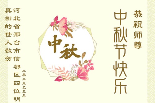 (Minghui.org) With the coming of the 2025 Mid-Autumn Festival (October 6), supporters of Falun Dafa across China are sending in their heartfelt greetings to Master Li Hongzhi, the founder of Falun Dafa, wishing Master a happy holiday.