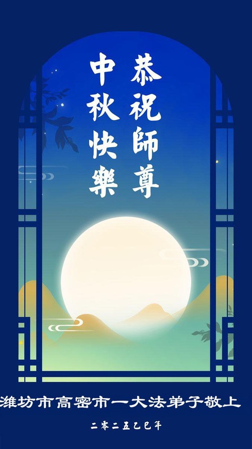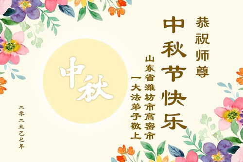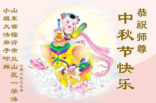 Falun Dafa Practitioners in Jinan, Linyi and Weifang Cities Respectfully Wish Master Li Hongzhi a Happy Mid-Autumn Festival (128 Greetings)