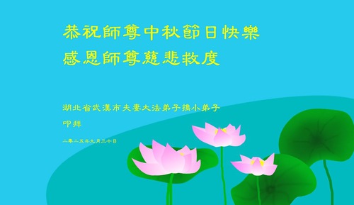 Falun Dafa Practitioners from Hubei Province Respectfully Wish Master Li Hongzhi a Happy Mid-Autumn Festival (79 Greetings)