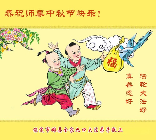 Falun Dafa Practitioners in Baoding and Tangshan Cities City Respectfully Wish Master Li Hongzhi a Happy Mid-Autumn Festival (91 Greetings)