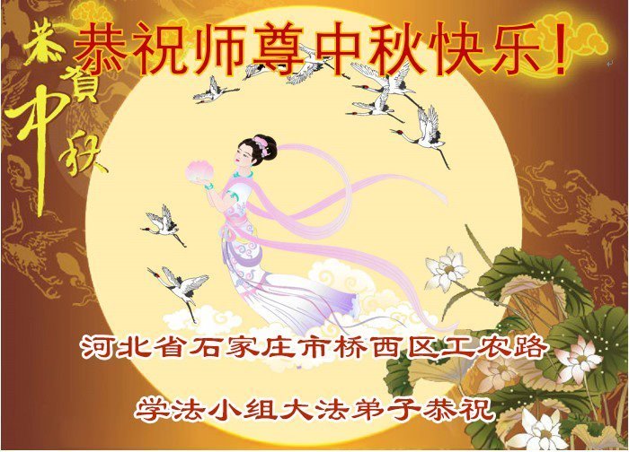 Falun Dafa Practitioners in Shijiazhuang, Zhangjiakou and Langfang Cities Respectfully Wish Master Li Hongzhi a Happy Mid-Autumn Festival (88 Greetings)