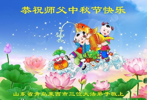 Falun Dafa Practitioners in Qingdao Respectfully Wish Master Li Hongzhi a Happy Mid-Autumn Festival (96 Greetings)