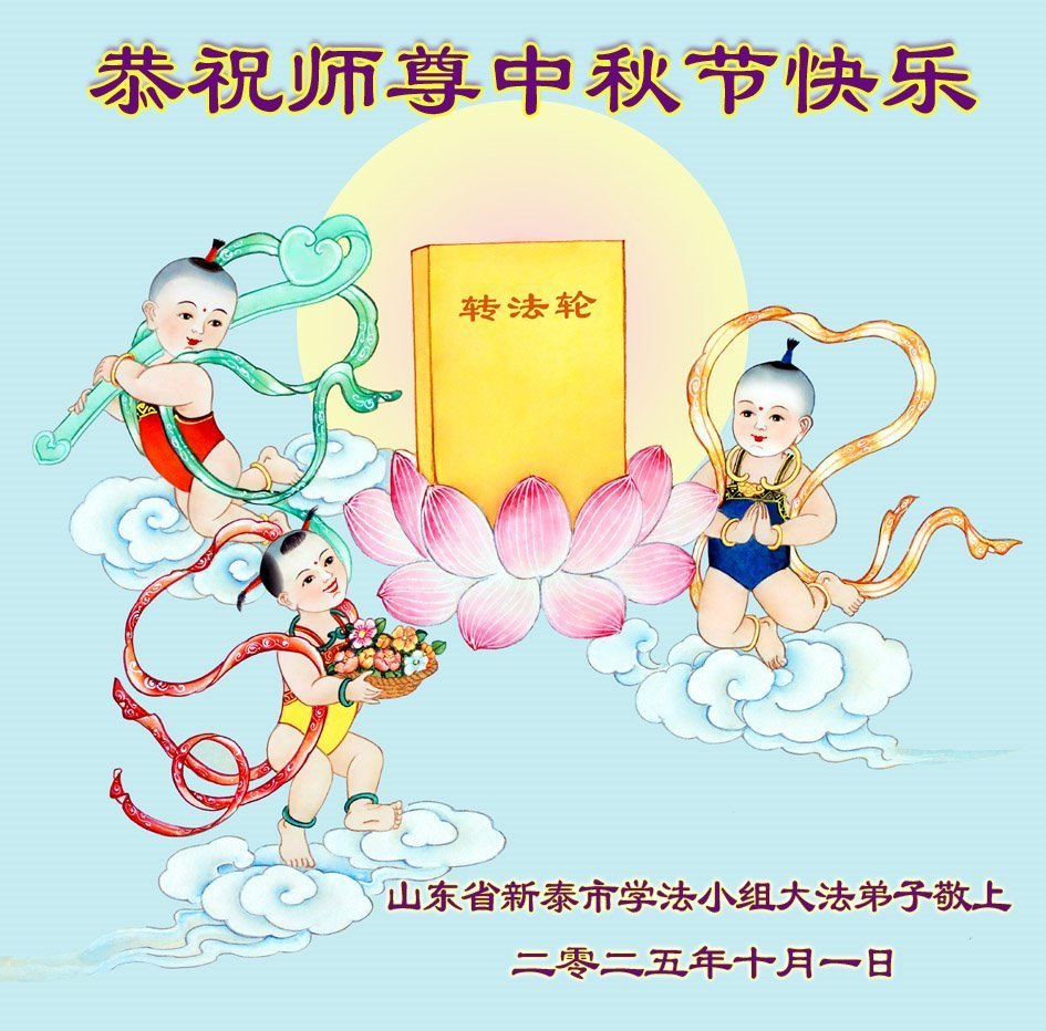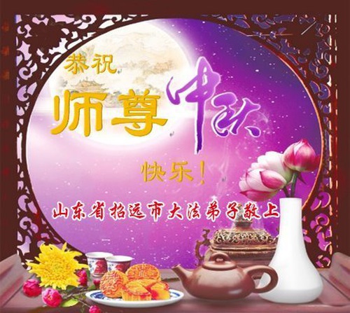 Falun Dafa Practitioners from Cities/Towns/Areas of Yantai, Zoucheng, Tai’an, Jining, Wish Revered Master a Happy Mid-Autumn Festival!