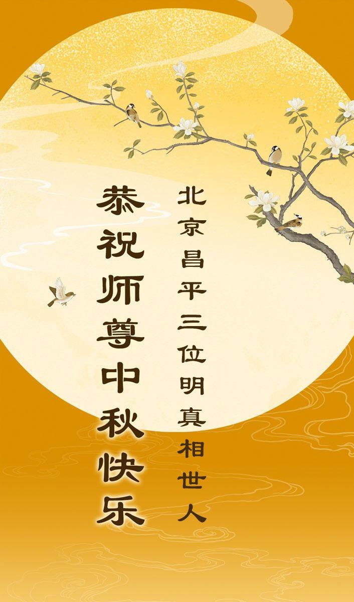 (Minghui.org) With the fast approach of the 2025 Mid-Autumn Festival (which falls on October 6), supporters of Falun Dafa across China are sending in their heartfelt greetings to Master Li Hongzhi, the founder of Falun Dafa, wishing him a happy holiday.