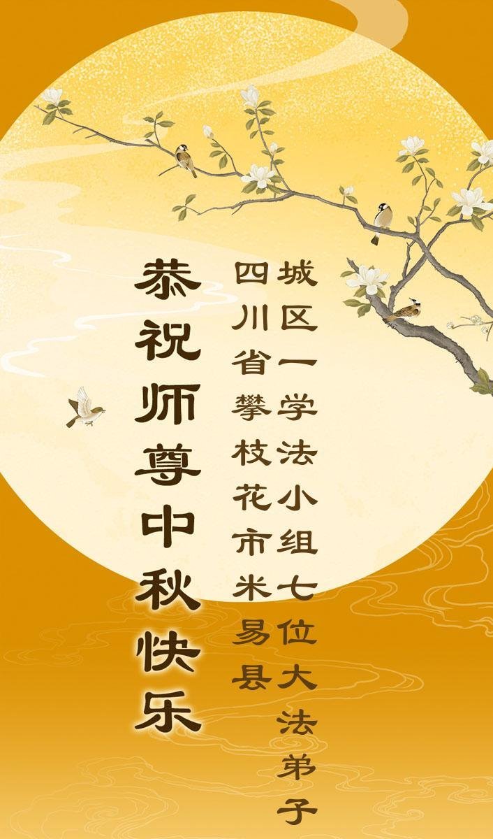 Falun Dafa Practitioners from Cities/Towns/Areas of Panzhihua, Dazhou, Shifang, and Deyang Wish Revered Master a Happy Mid-Autumn Festival!