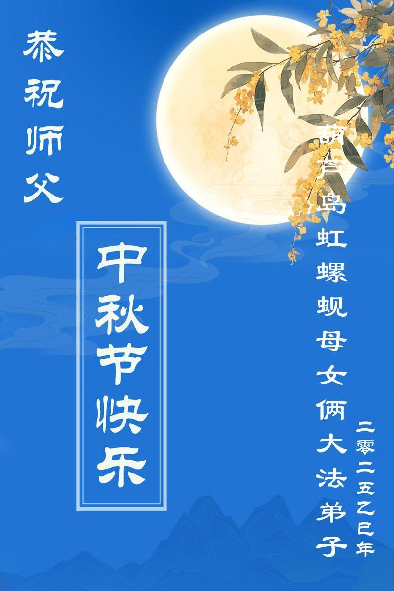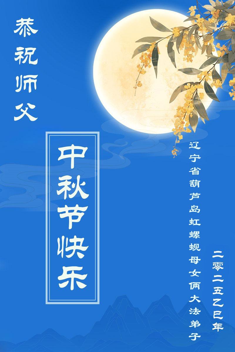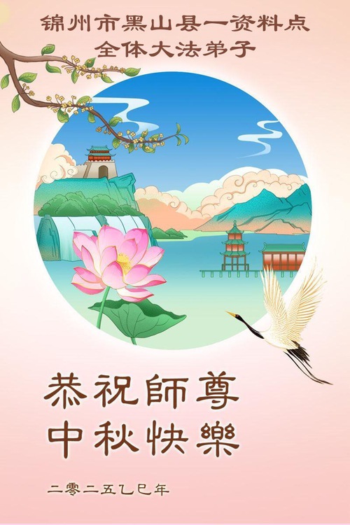 Falun Dafa Practitioners from Shenyang, Jinzhou, Changyang, and Huludao Cities Respectfully Wish Master Li Hongzhi a Happy Mid-Autumn Festival (104 Greetings)