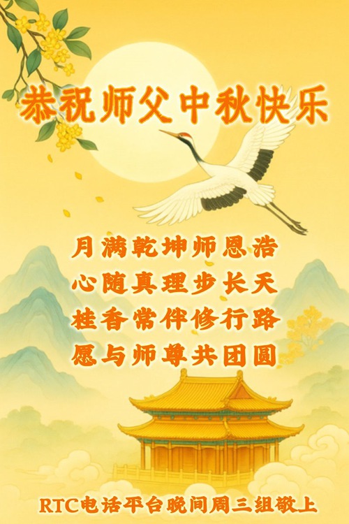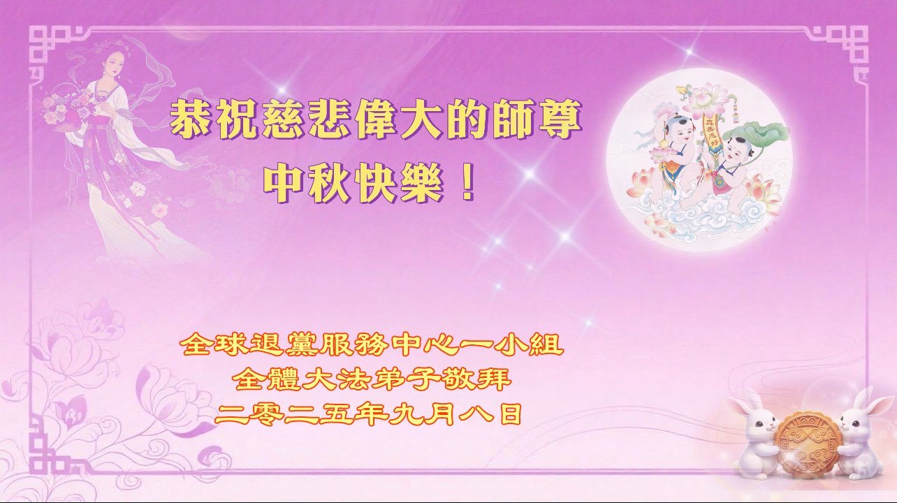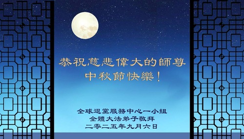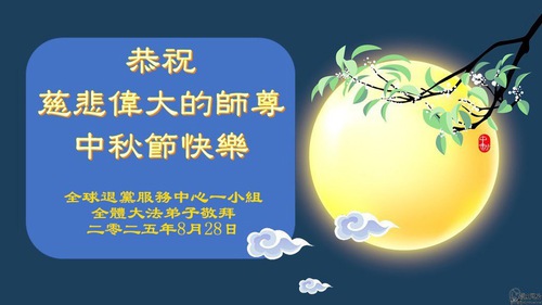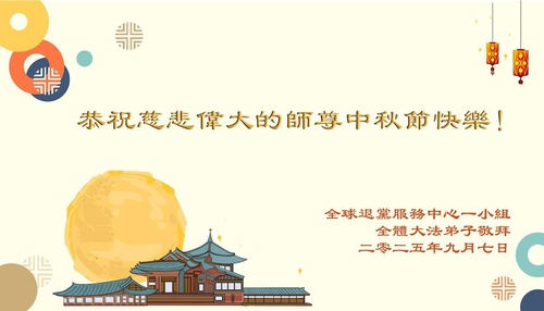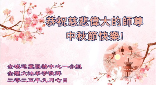 (Minghui.org) On the special occasion of the 2025 Mid-Autumn Festival, Falun Dafa practitioners are sending their most heartfelt greetings to the founder of the practice, Master Li Hongzhi.