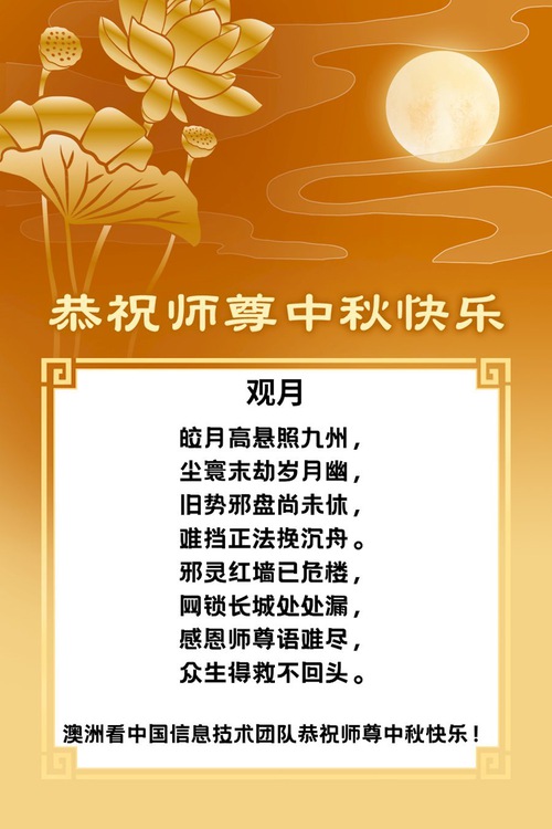 (Minghui.org) In this report, we present greetings from practitioners in Australia and New Zealand. They wish Master Li a happy Mid-Autumn Festival.