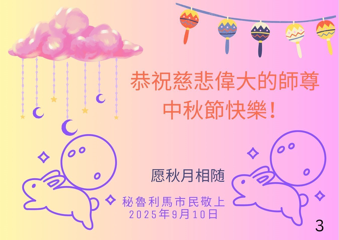Residents in Peru Respectfully Wish Benevolent Great Master a Happy Mid-Autumn Festival!