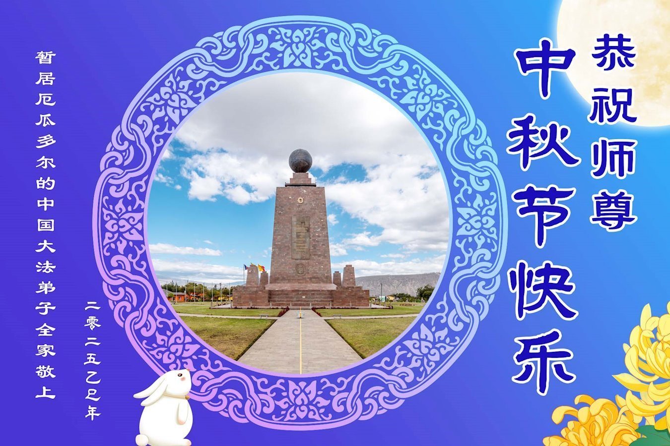 A Chinese Falun Dafa practitioner, Sojourning in Ecuador, and Relatives and Friends Respectfully Wish Master a Happy Mid-Autumn Festival!