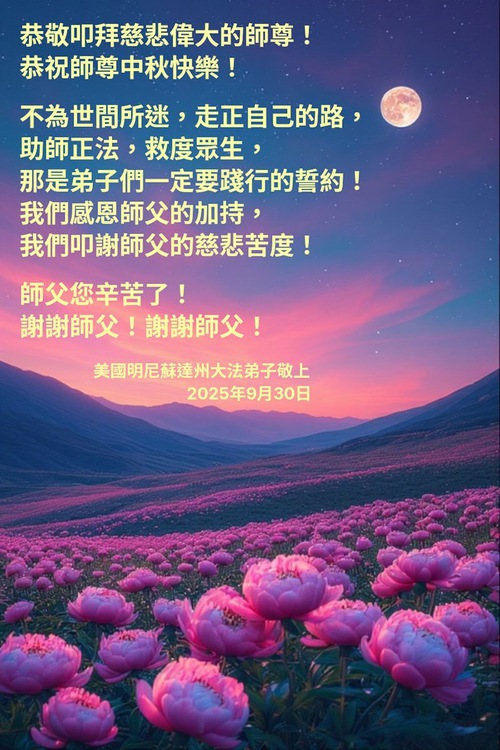 A Falun Dafa Practitioner in Ohio, U.S.A., on Behalf of the Whole Family, Respectfully Wishes Master a Happy Mid-Autumn Festival!