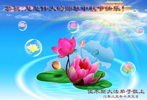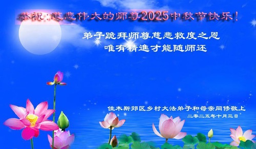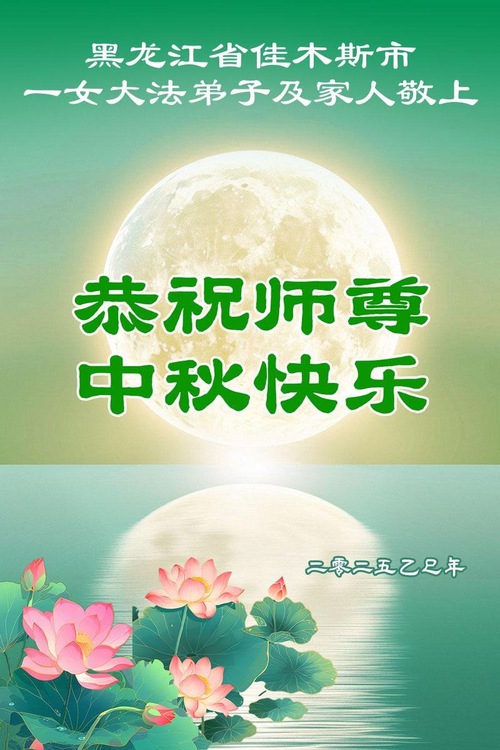 Falun Dafa Practitioners from Shandong and Heilongjiang Provinces Respectfully Wish Master Li Hongzhi a Happy Mid-Autumn Festival (128 Greetings)