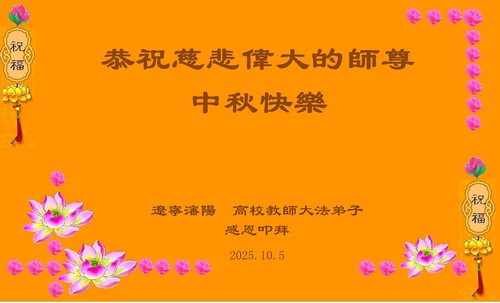 Falun Dafa Practitioners from Liaoning and Heilongjiang Provinces and Inner Mongolia Autonomous Region Respectfully Wish Master Li Hongzhi a Happy Mid-Autumn Festival (123 Greetings)