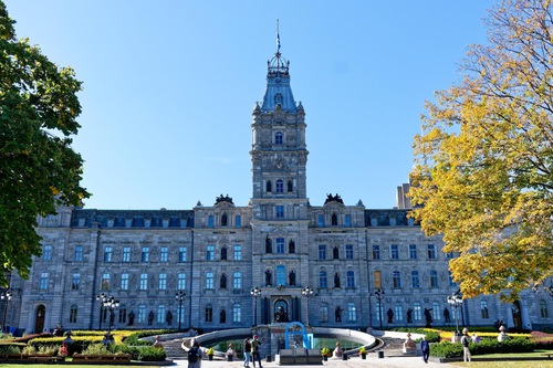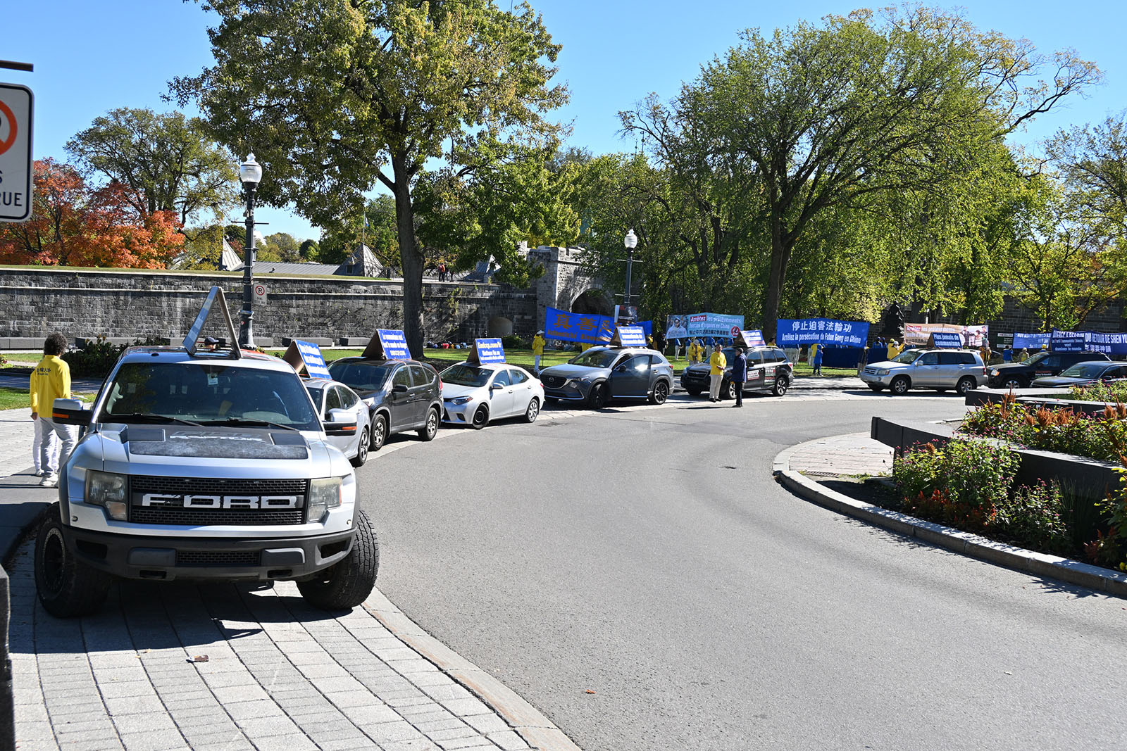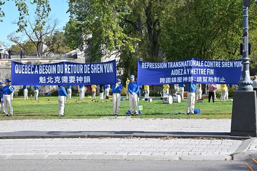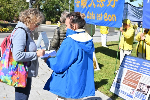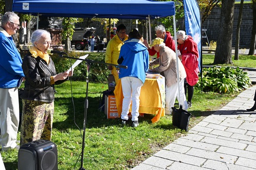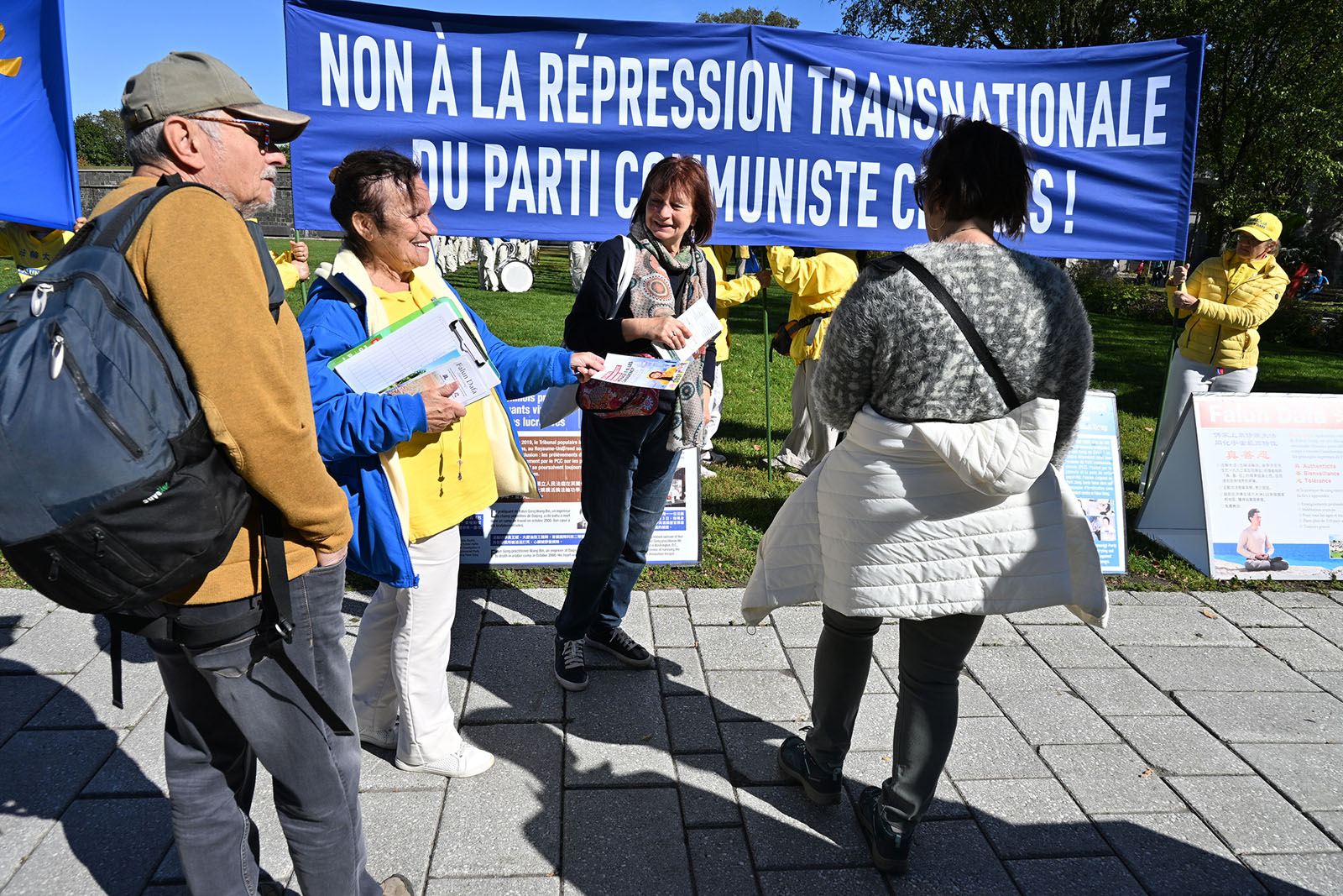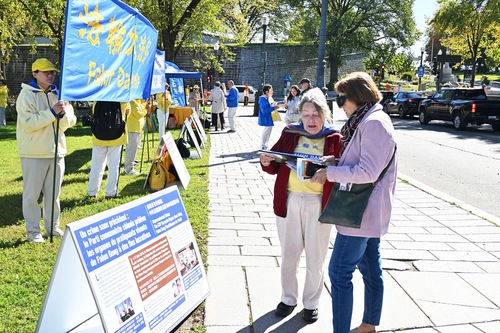 (Minghui.org) Canadian practitioners in Quebec City held an event at the National Assembly Square on October 2 to raise awareness of the Chinese Communist Party’s (CCP) transnational repression of Falun Dafa. The Square is also home to the Parliament Building of Quebec, and lawmakers were in session during the event.
