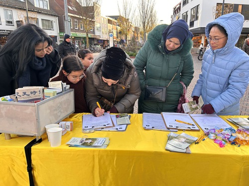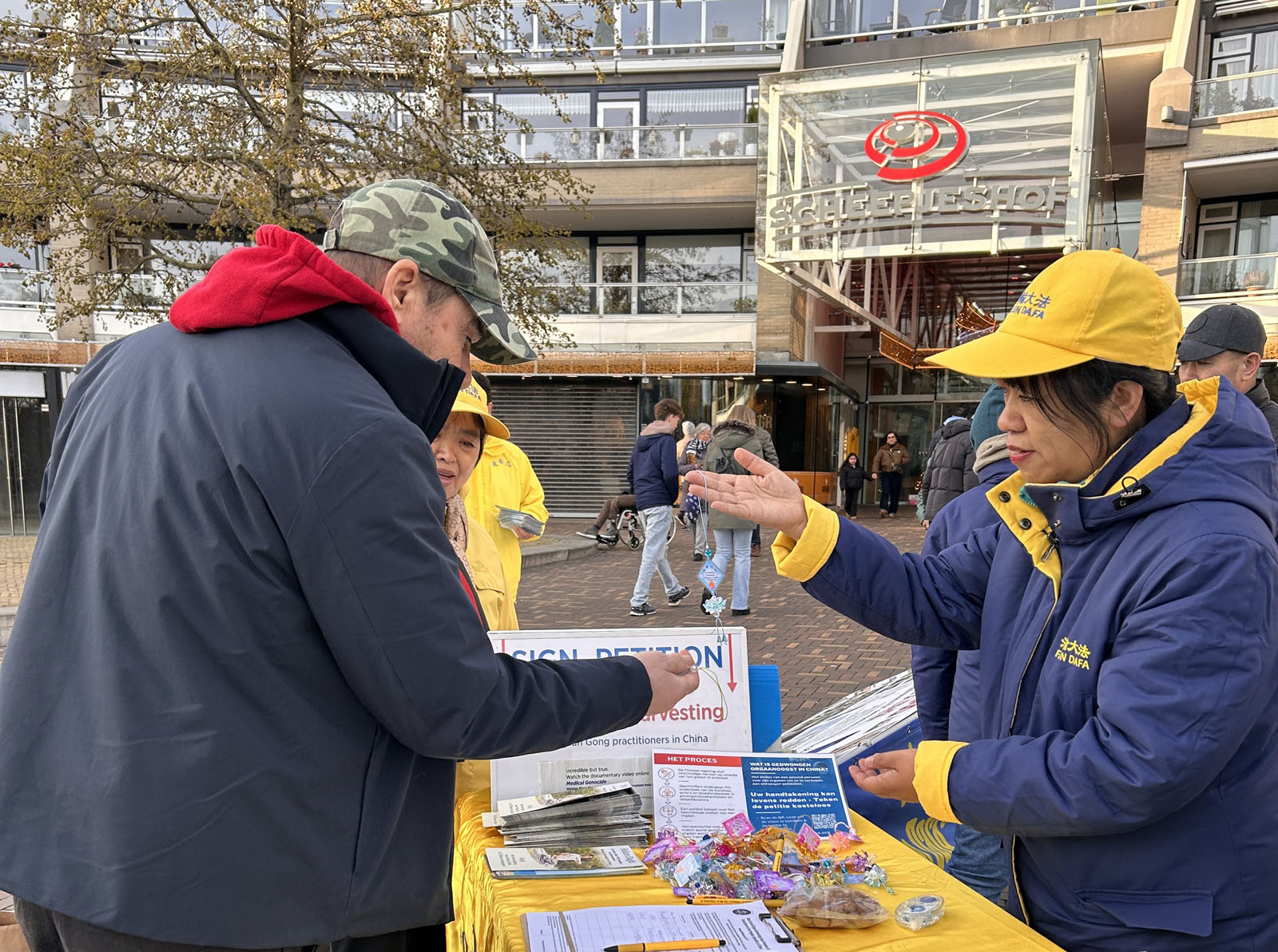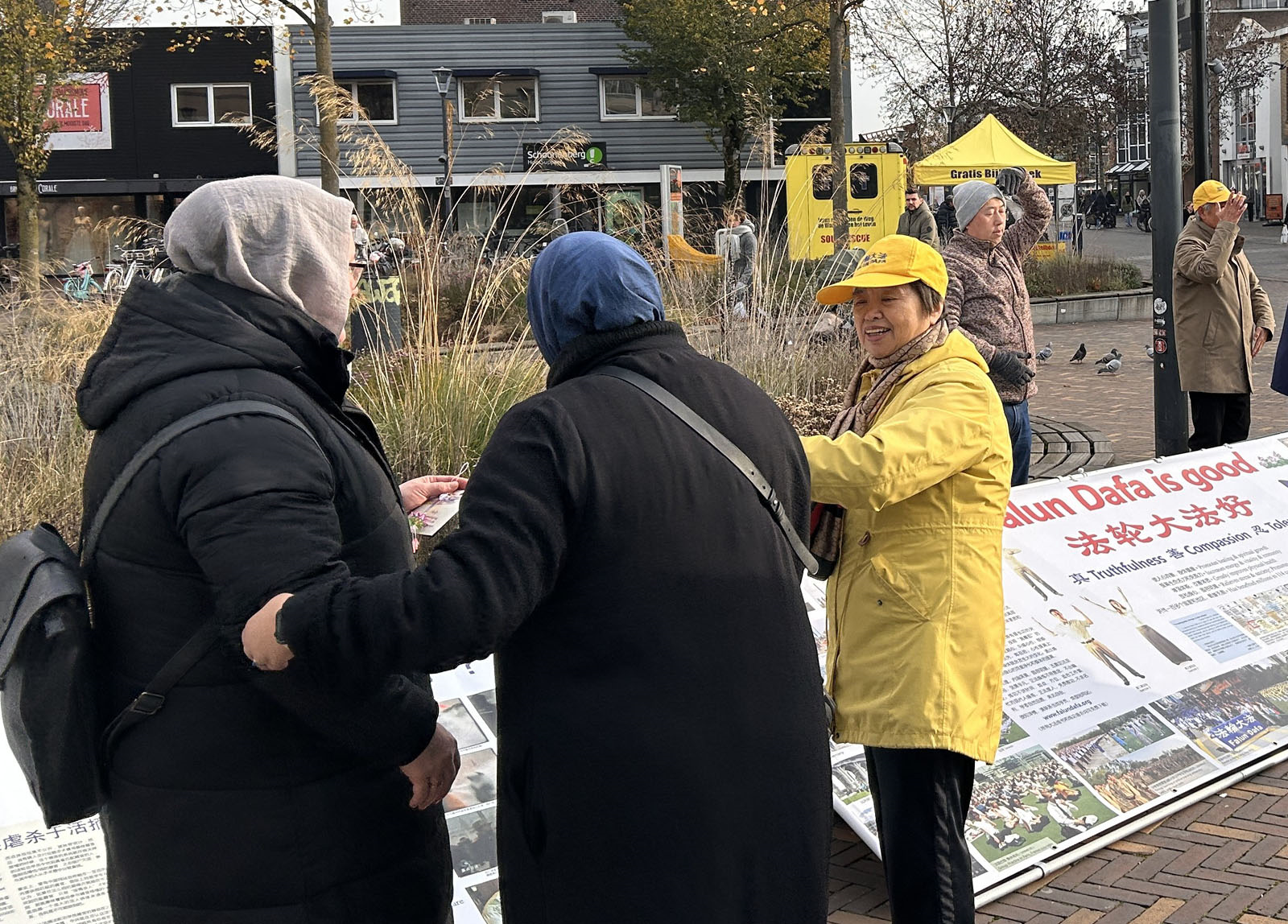 (Minghui.org) Falun Dafa practitioners introduced the spiritual practice at Veenendaal on November 22, 2025. Veenendaal is located in the middle of the Netherlands. It is administered by the Utrecht Province, was founded in the 16th century, covers an area of 19 square kilometers, and has a population of about 62,000.