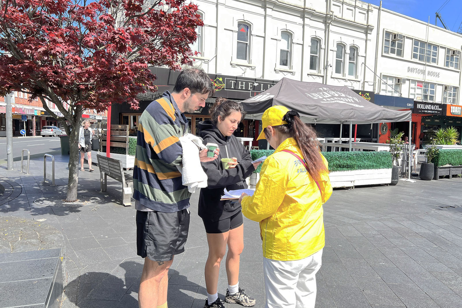 Mina and Matt from Germany were visiting relatives in New Zealand, and noticed the event. They were shocked to learn of the CCP’s persecution of Falun Dafa. Mina said, “This is completely inhumane and unacceptable.”