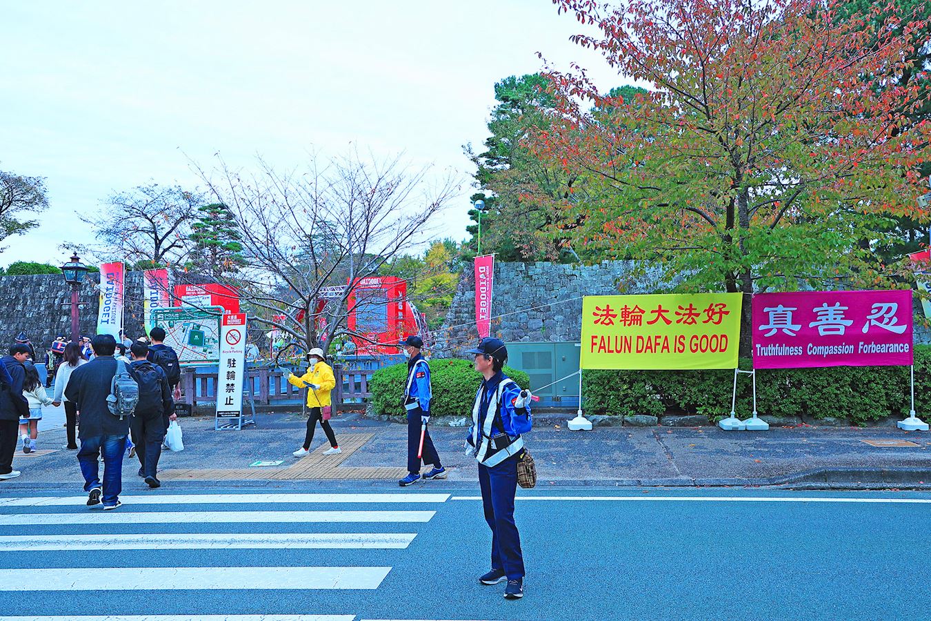 (Minghui.org) The largest street performing arts festival in Asia, the 32nd Daidogei World Cup, was held in Shizuoka from October 31 to November 3, 2025. Street performers from around the world flock to Japan to participate in the popular event. Falun Dafa practitioners distributed information about their spiritual practice and the persecution in China to residents and tourists.