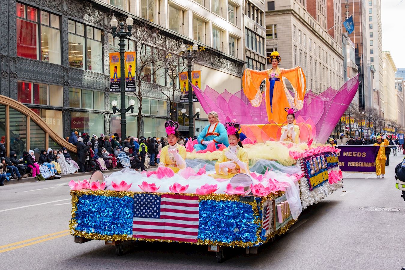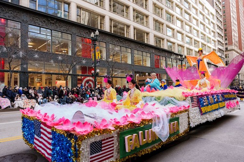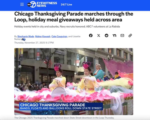 (Minghui.org) The 91st Chicago Thanksgiving Parade was held on November 27, 2025. It was the coldest day of the winter so far in Chicago, yet many spectators lined the streets to watch.