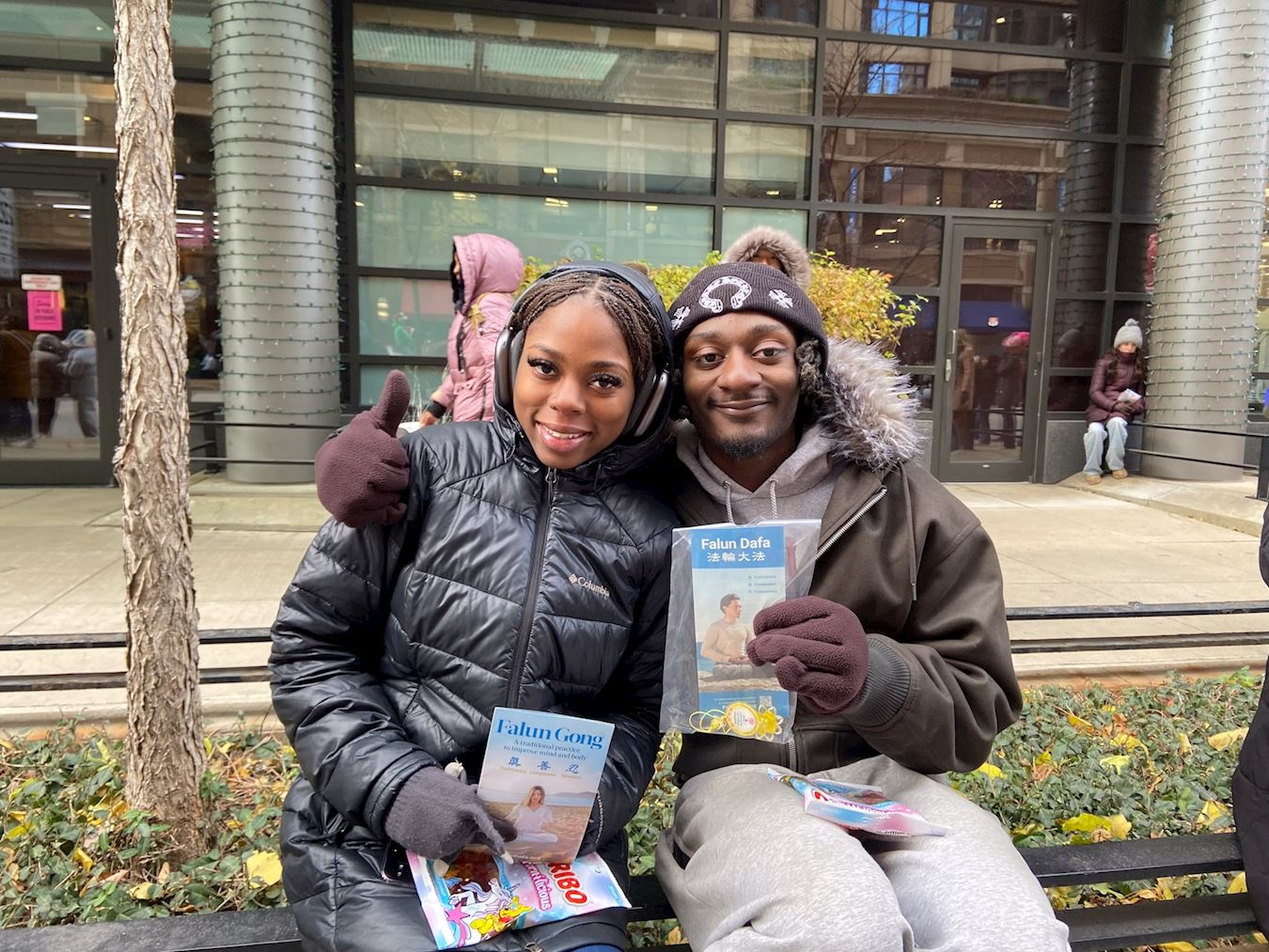 Vanessa (left) and Tyran (right) enjoyed the Falun Dafa parade entry.