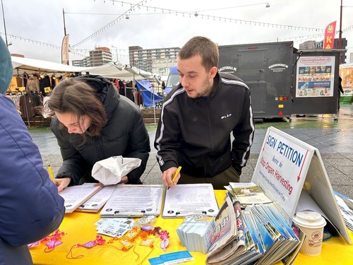 (Minghui.org) The Dutch truth-clarification tour group held an information day event in Amsterdam on December 6, 2025. Many people learned about Falun Gong and signed a petition. A man said, “The Netherlands need to know this. I support you!”