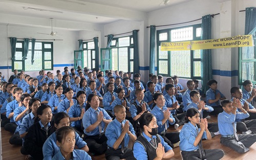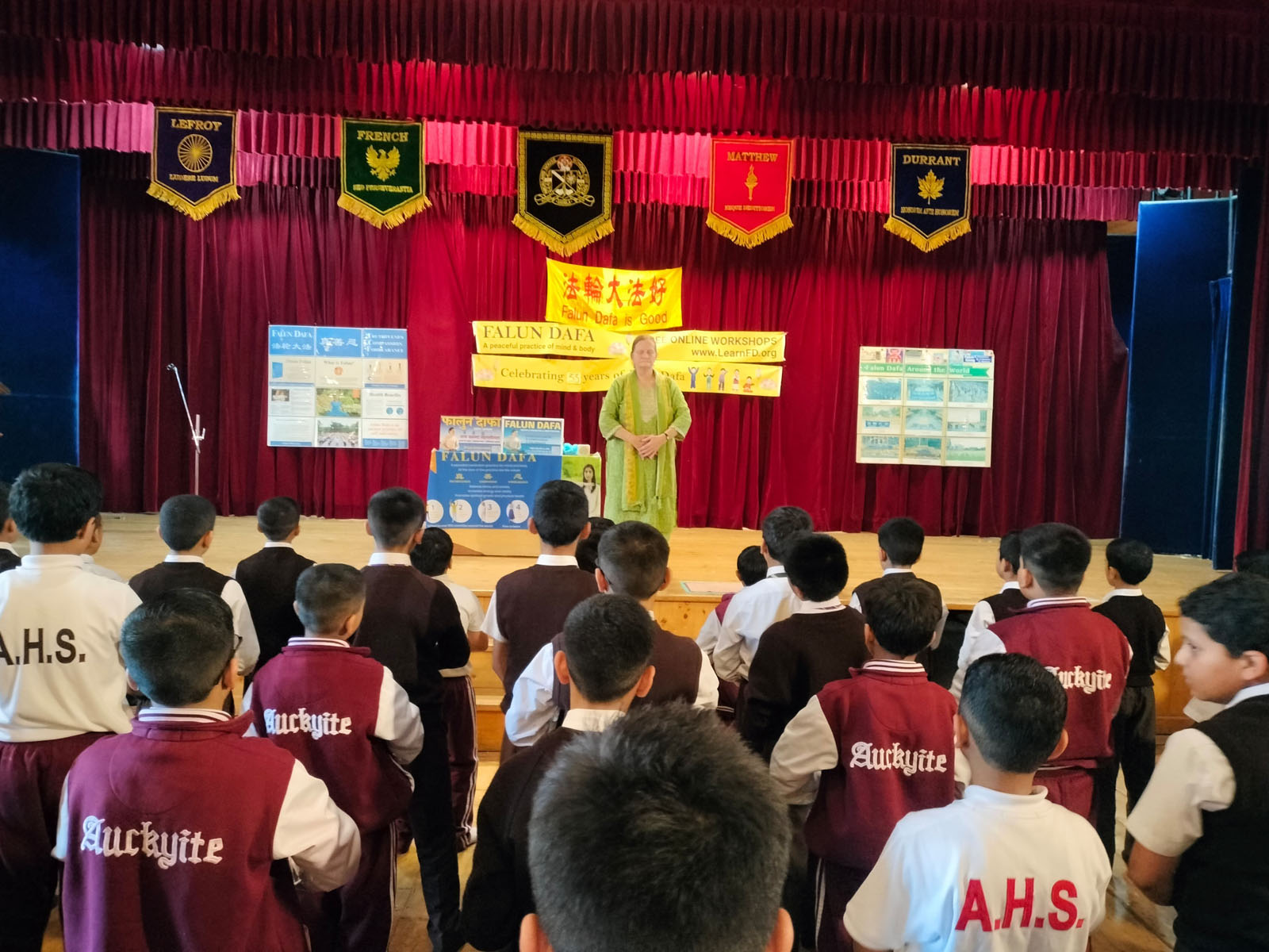 The students who attended came from a variety of backgrounds, including girls’ schools and colleges, children’s homes, special education schools, and a Tibetan school. They expressed their appreciation for the exercises and Falun Dafa’s values of Truthfulness, Compassion, and Forbearance. The practitioner also received help from locals who are supportive of the effort to spread Falun Dafa.