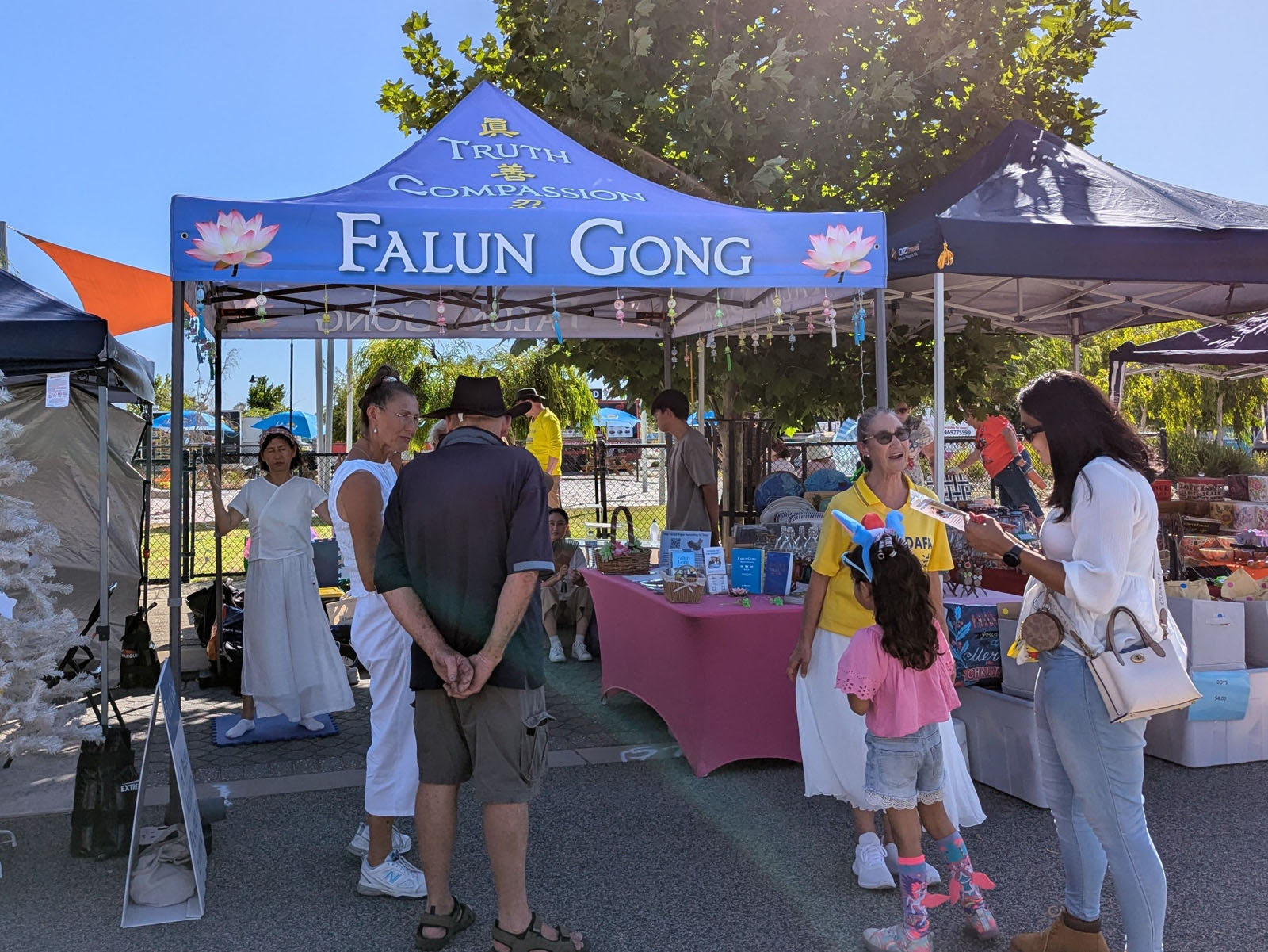 Sharon and Simone stopped by the booth because Sharon said she had heard about Falun Dafa before. “I want to stop by to say hello because I knew about the history of Falun Dafa,” she said.