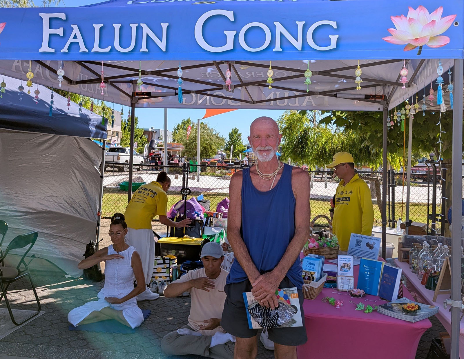 Cory Eustace told practitioners that he felt wonderful energy around the booth and that made people feel happy. He said he was interested in learning how to practice because Falun Dafa, “Brings peace of mind and unlocks potentials. This is definitely something that I will be interested in looking into.”