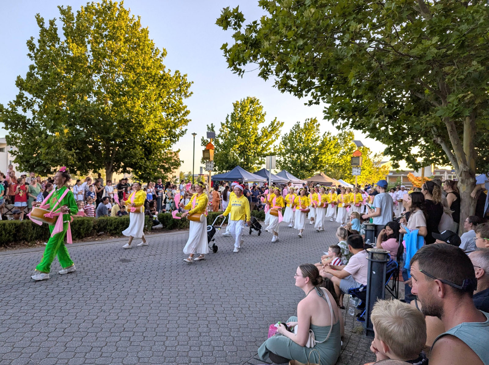 Practitioners had a booth at the Christmas festival in Ellenbrook, Perth, on Saturday, December 13, 2025. They introduced the physical and mental benefits of practicing Falun Dafa to passersby and demonstrated the exercises. Later that evening they participated in a parade and celebrated the holidays with local residents.