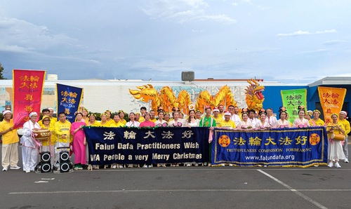 Practitioners joined the Christmas parade that evening to introduce Falun Dafa.