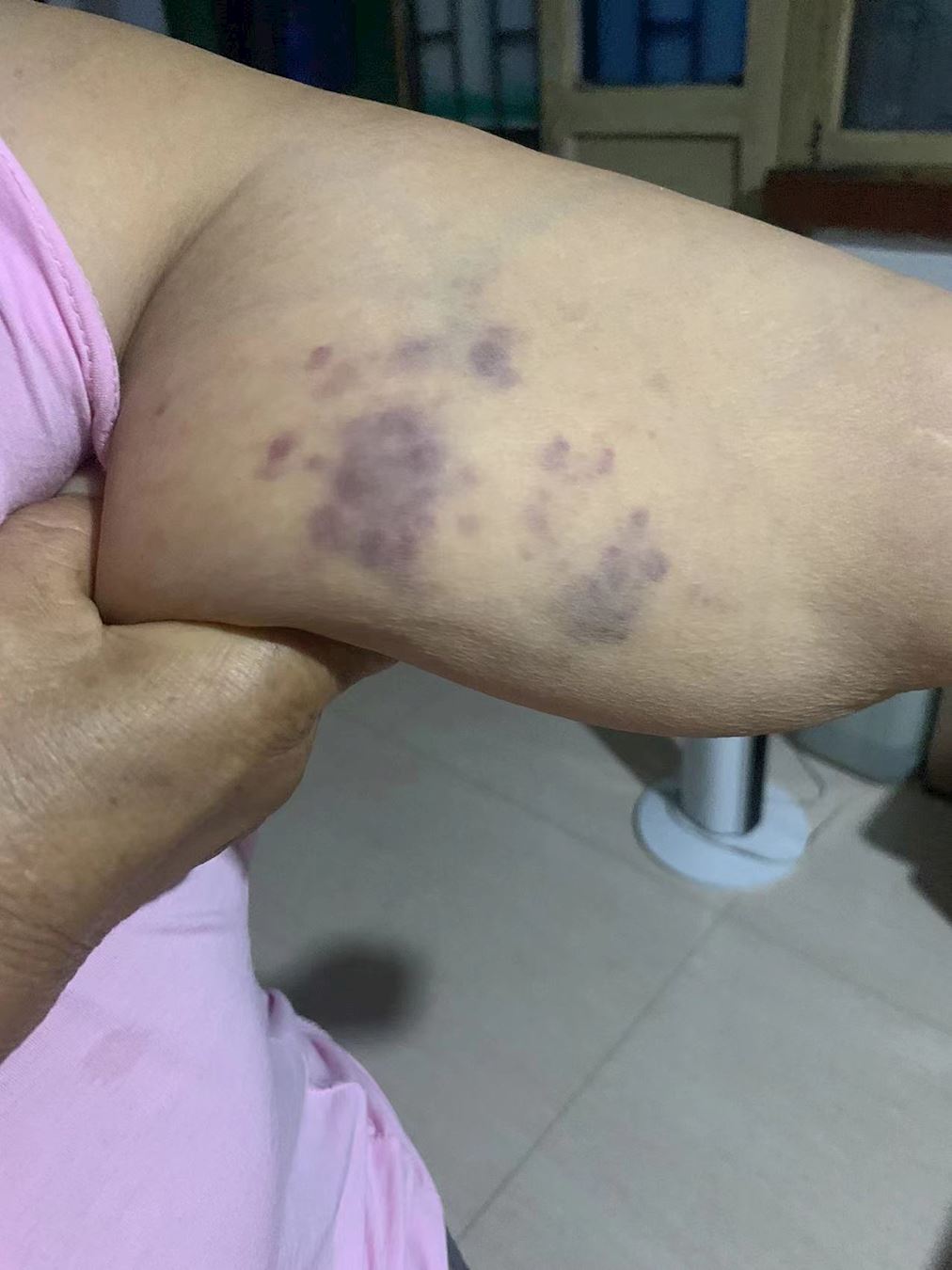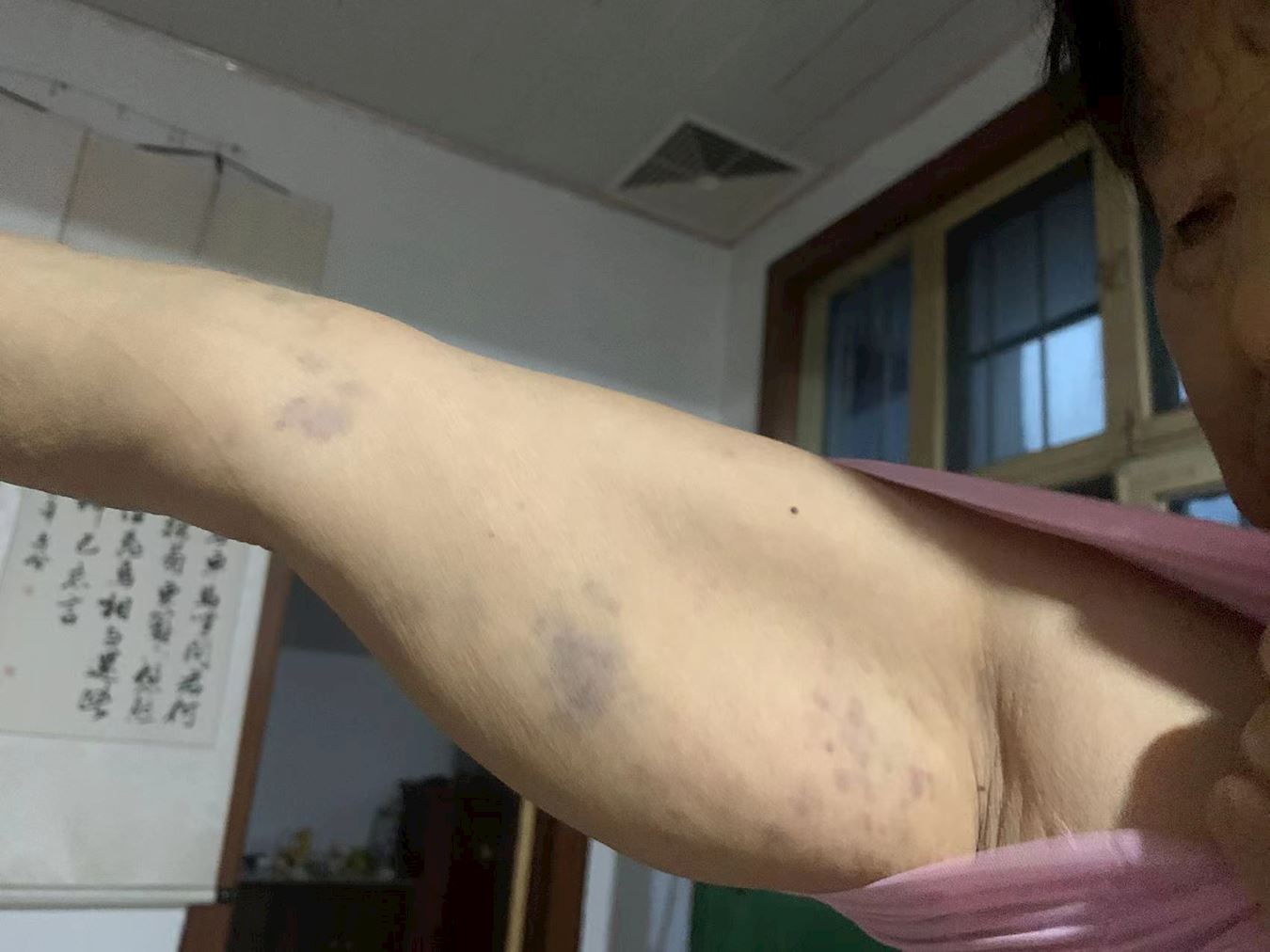Ms. Zhang's arms were bruised due to the police violence during her arrest.