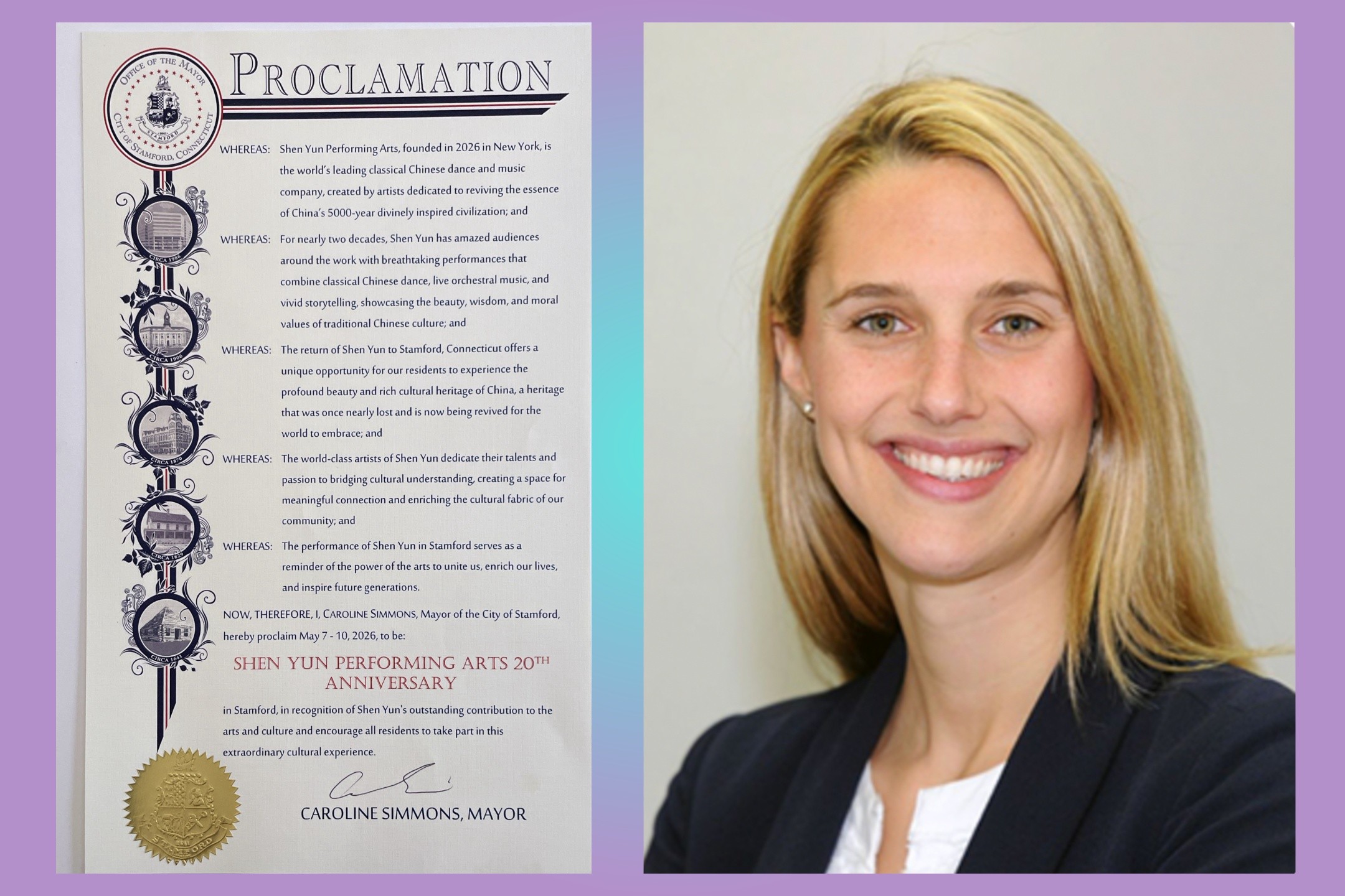 “Now, therefore, I, Caroline Simmons, Mayor of the City of Stamford, hereby proclaim May 7-10, 2026, to be: Shen Yun Performing Arts 20th Anniversary in Stamford, in recognition of Shen Yun’s outstanding contribution to the arts and culture and encourage all residents to take part in this extraordinary cultural experience.”