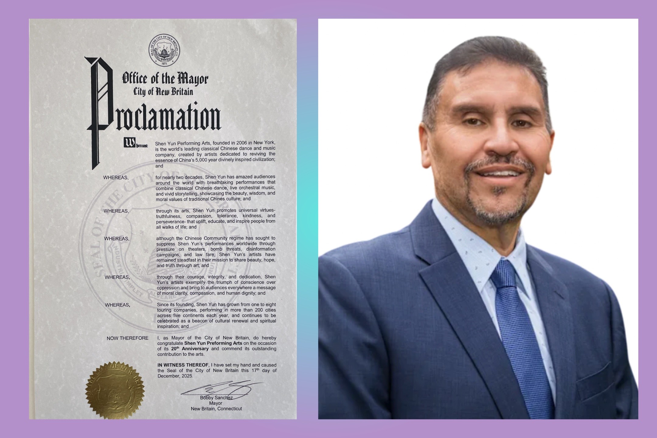 In December 2025, Mayor Bobby Sanchez of New Britain, Connecticut, issued a proclamation for Shen Yun Performing Arts.