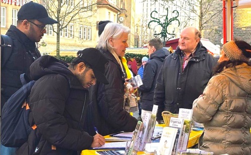 It was the last weekend before Christmas, so the renowned Nuremberg Christmas Market was filled with tourists. Many people signed the petition calling for an end to the CCP’s persecution and encouraged practitioners to persist in their efforts.