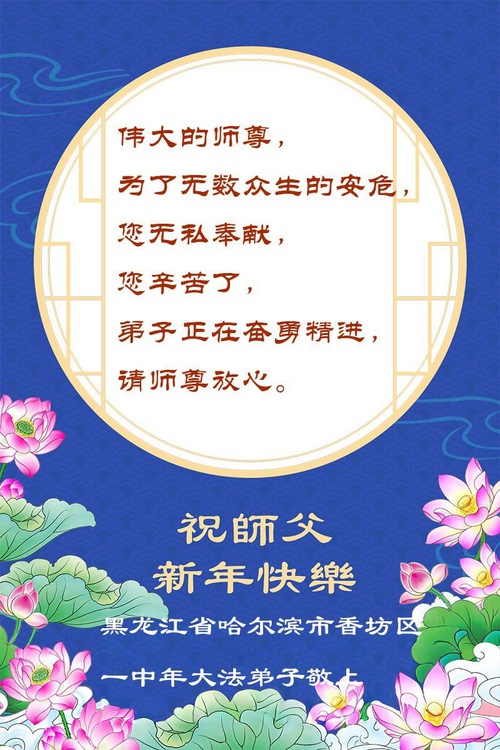 Falun Dafa Practitioners from Harbin City Respectfully Wish Master Li Hongzhi a Happy New Year (106 Greetings)