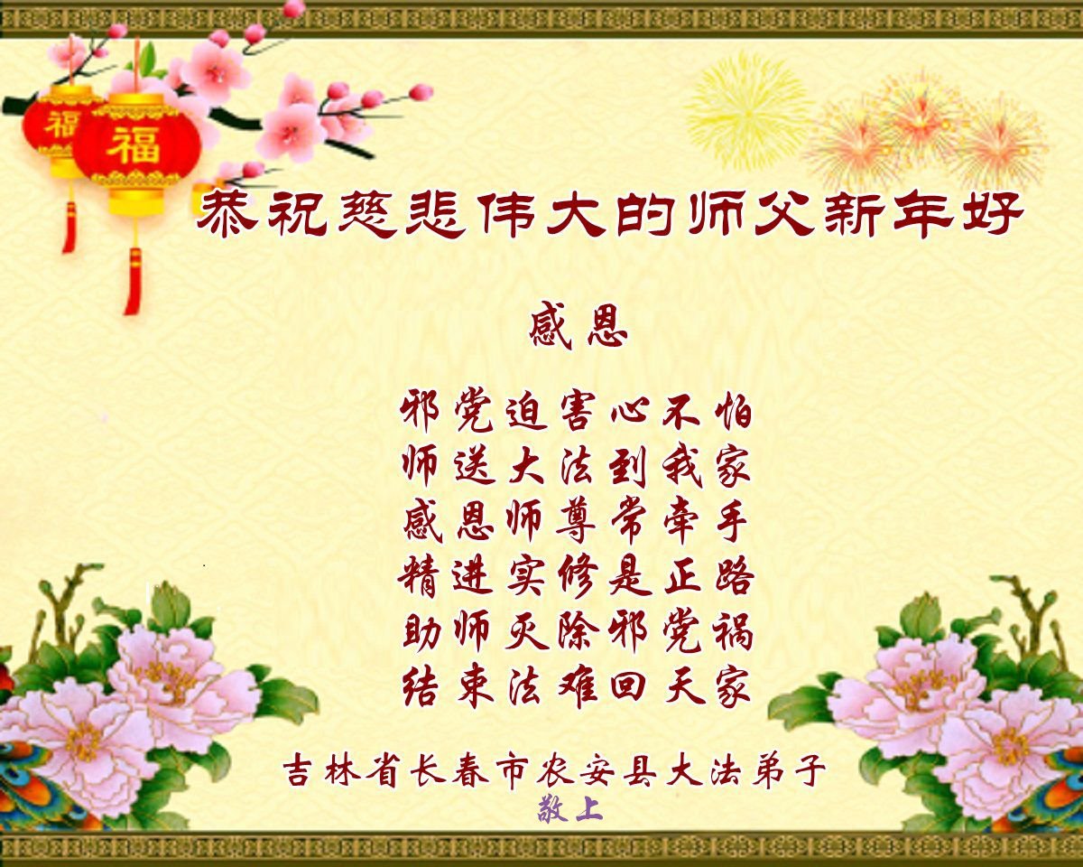 Falun Dafa Practitioners from Changchun City Respectfully Wish Master Li Hongzhi a Happy New Year (112 Greetings)