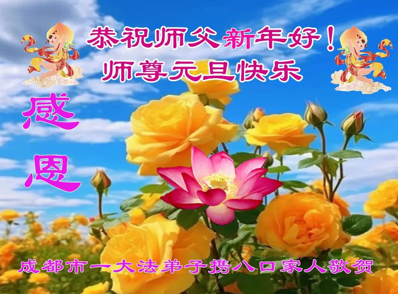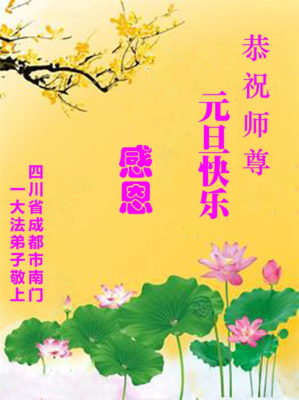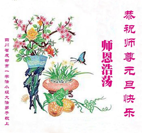Falun Dafa Practitioners from Chengdu City Respectfully Wish Master Li Hongzhi a Happy New Year (102 Greetings)