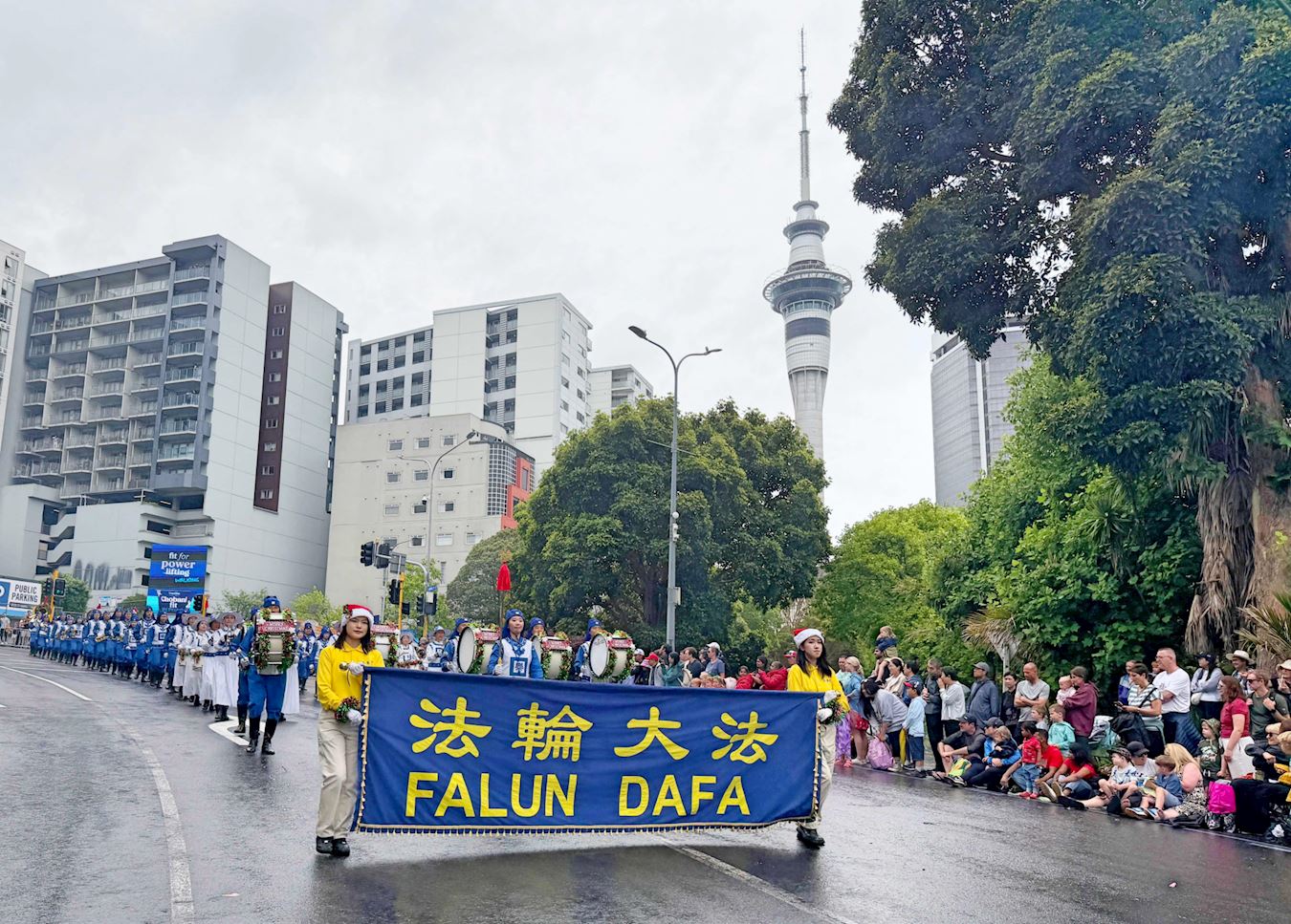 (Minghui.org) Falun Dafa practitioners in New Zealand participated in five Christmas parades in four cities on North Island and South Island on November 29 and 30, 2025. The parades were held in Auckland, Orewa of Auckland, Rotorua, Dunedin, and Invercargill.