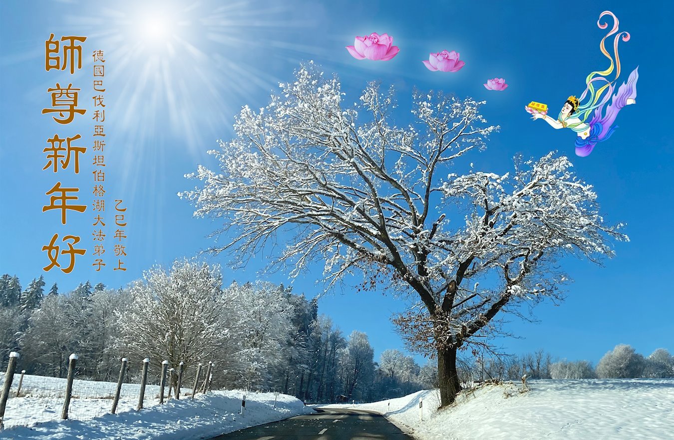 New Year greetings to Master from practitioners in Lake Steinberg, Bavaria, Germany