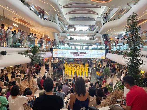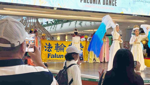 (Minghui.org) As part of its celebration of the 2025 Lunar New Year, Icon Mall in Bali hosts a series of cultural performances and traditional Chinese festivities throughout January and February. The Falun Dafa community was invited to participate, and gave a waist drum and phoenix dance performance on February 2, 2025.