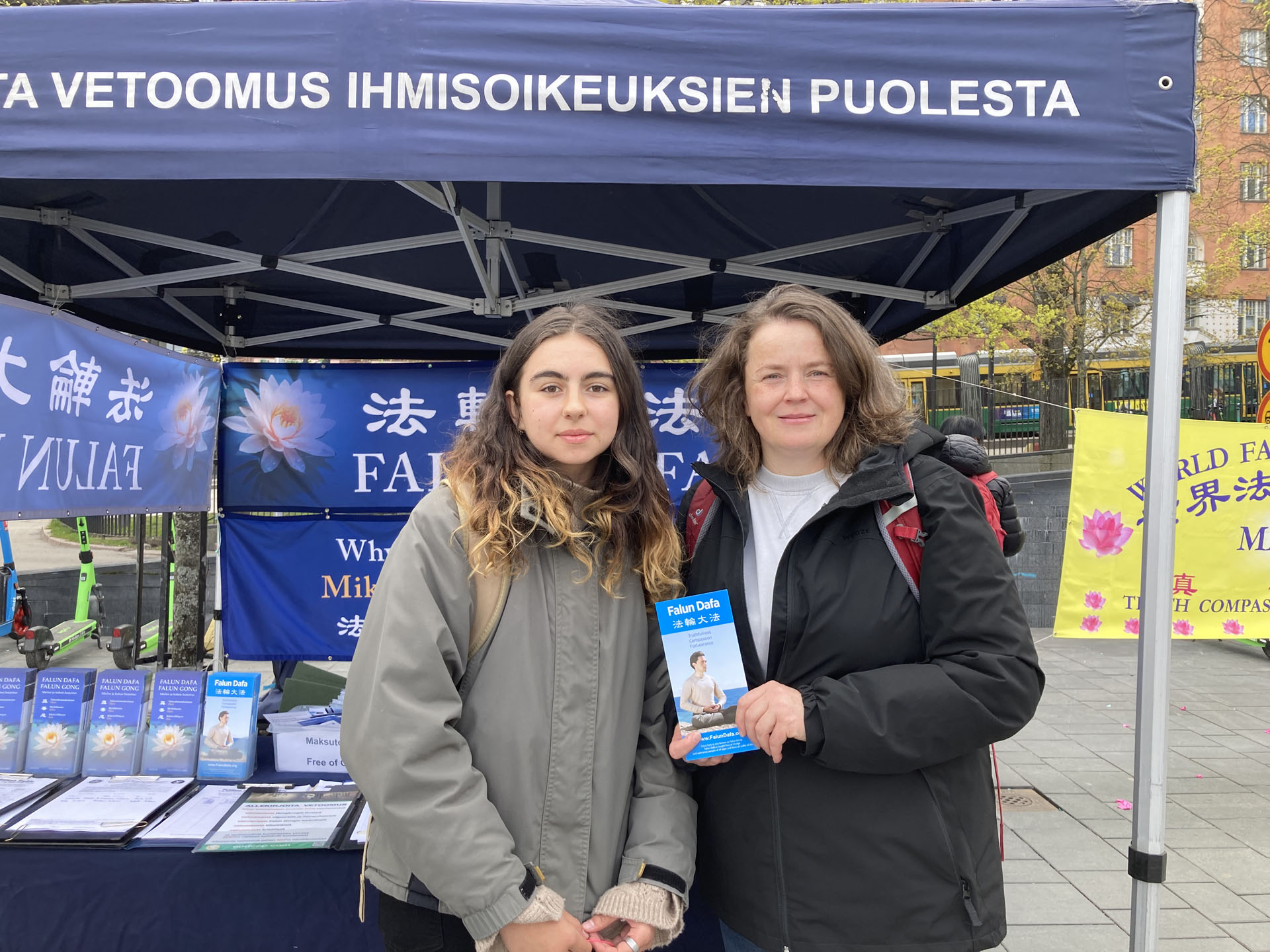 Akseli, a student at the University of Helsinki, walked up to the truth information table and smiled as he chatted with the participants. He said, “Falun Dafa is a peaceful practice and a method of cultivation that emphasizes physical and mental health. I feel that it is connected to traditional Chinese culture.”