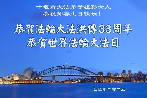 (Minghui.org) May 13, 2025, marks the 26th World Falun Dafa Day and the 33rd anniversary of the public introduction of Falun Dafa. This day is also the birthday of Master Li, the founder of Falun Dafa. Practitioners around the world are sending their heartfelt greetings to celebrate this grand occasion and honor revered Master on this special day.