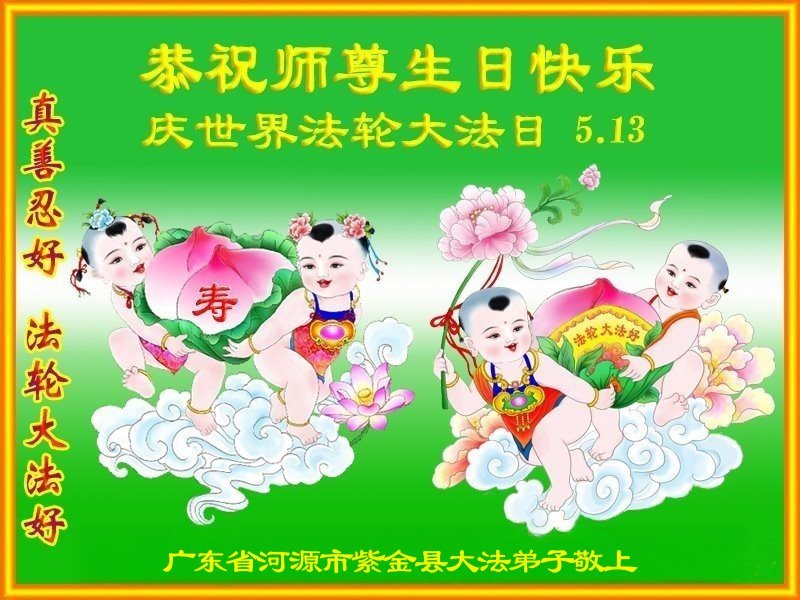 Falun Dafa Practitioners from Guangdong Province Wish Revered Master a Happy Birthday and Celebrate World Falun Dafa Day!