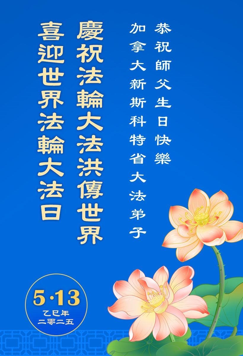 (Minghui.org) Practitioners in Canada celebrate World Falun Dafa Day and the 33rd anniversary of Falun Dafa’s introduction to the public. They also respectfully wish revered Master a happy birthday and express their gratitude for Master’s compassionate salvation.