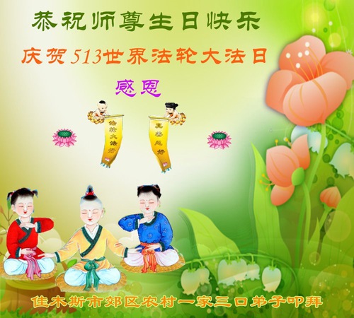 A practitioner from Liuhe County, Jilin Province, wrote, “It’s with utmost reverence that we wish Master Li a happy birthday! We hope more people can understand the facts about Dafa and be saved. We all miss Master so much! In the remaining time ahead, we are determined to do the three things well, better fulfill our missions, and return to our heavenly homes with Master.”