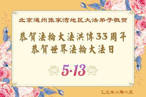 Falun Dafa Practitioners from Beijing Wish Revered Master a Happy Birthday and Celebrate World Falun Dafa Day!
